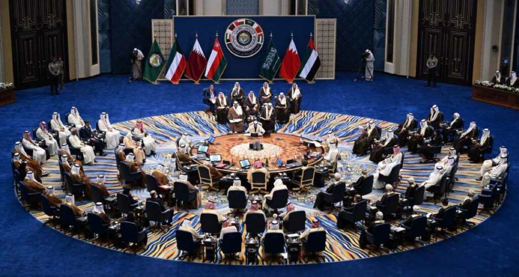 وأشاد القادة بالدور المتنامي لدول المجلس في التصدي للتحديات السياسية والأمنية والاقتصادية في هذه المنطقة وخارجها ومساهمتها في حل القضايا التي تهدد السلام والأمن والاستقرار وتعزيز الحوار الدولي والتواصل بين الشعوب والشراكات الاستراتيجية المثمرة مع الدول والمجموعات الأخرى والتأكيد على أهمية متابعة ما صدر من قرارات عن القمم والاجتماعات الوزارية التي عقدت في هذا الإطار لضمان التنفيذ الكامل لتلك القرارات وفق جداول زمنية محددة وتعظيم الفوائد المرجوة منها وفق أسس عملية مدروسة.
