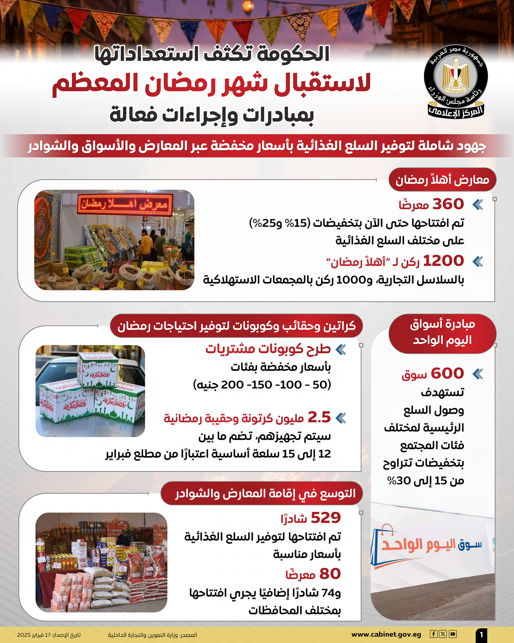 بالإنفوجراف.. المركز الإعلامى لمجلس الوزراء: الحكومة تكثف استعداداتها لاستقبال شهر رمضان