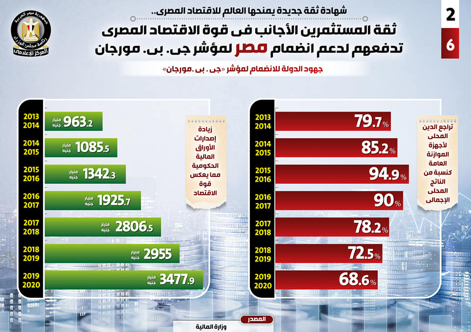 بالإنفوجراف.. ثقة المستثمرين الأجانب في قوة اقتصاد مصر تدفعهم لدعم انضمامها لـ”جي. بي. مورجان”