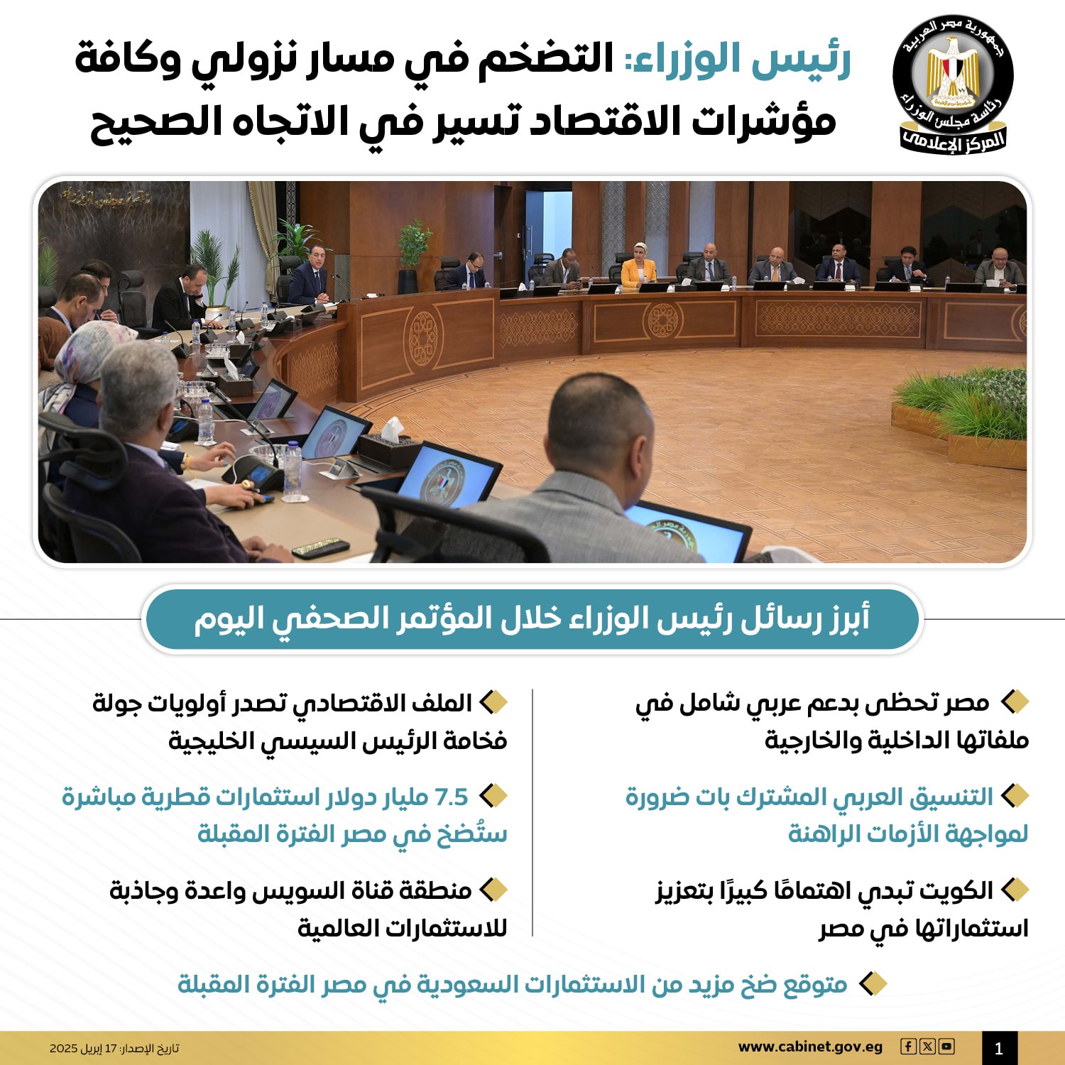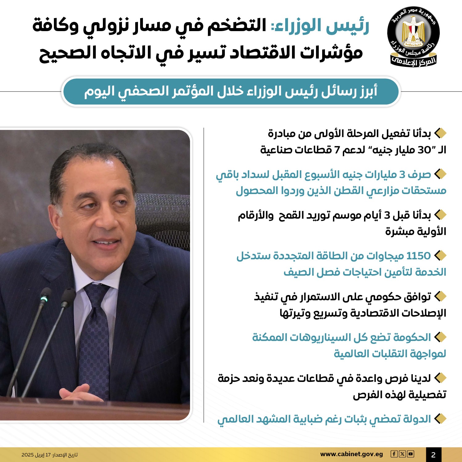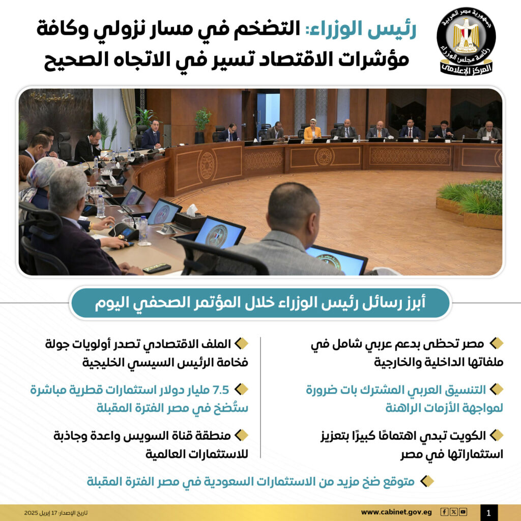 نشر المركز الإعلامى لمجلس الوزراء أبرز رسائل الدكتور مصطفى مدبولى رئيس الوزراء خلال المؤتمر الصحفى الأسبوعى .