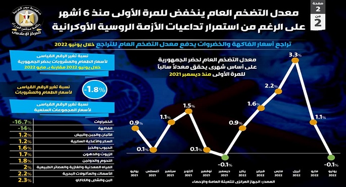 بالإنفوجراف .. مجلس الوزراء: معدل التضخم ينخفض للمرة الأولى منذ 6 أشهر رغم استمرار تداعيات الأزمة الروسية الأوكرانية