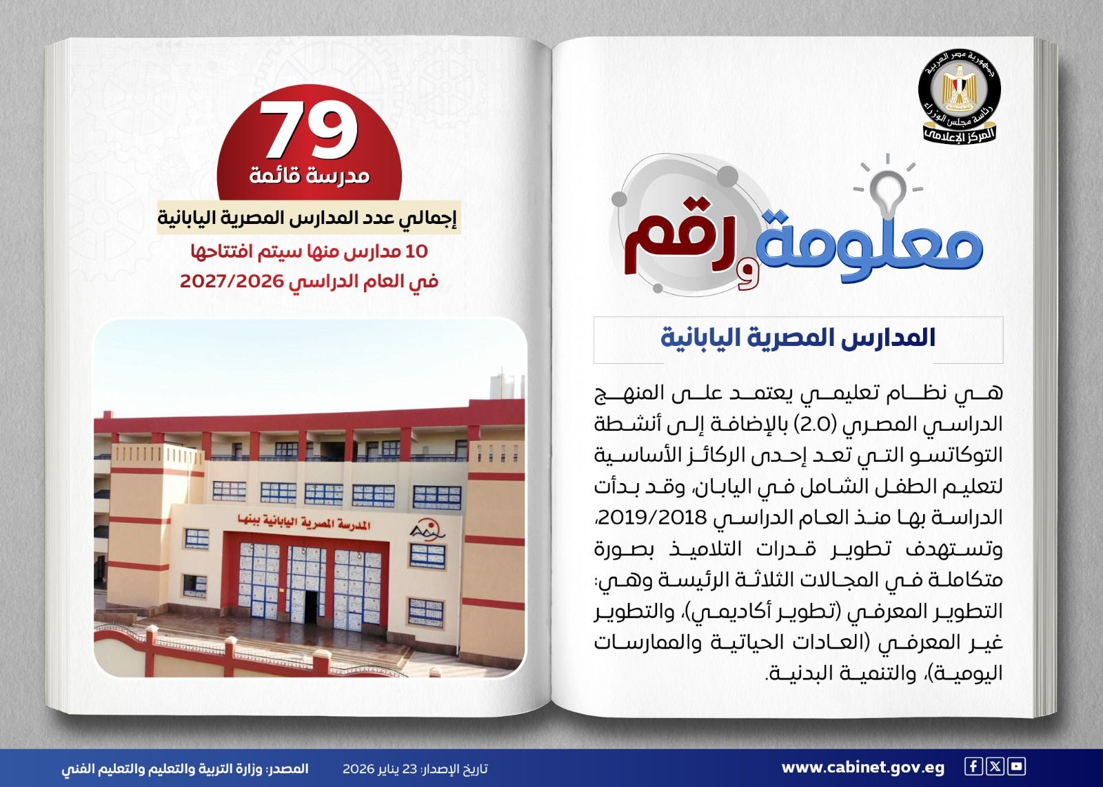 بالإنفوجراف.. مجلس الوزراء يستعرض جهود الدولة فى تطوير التعليم من خلال المدارس اليابانية