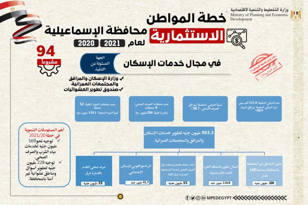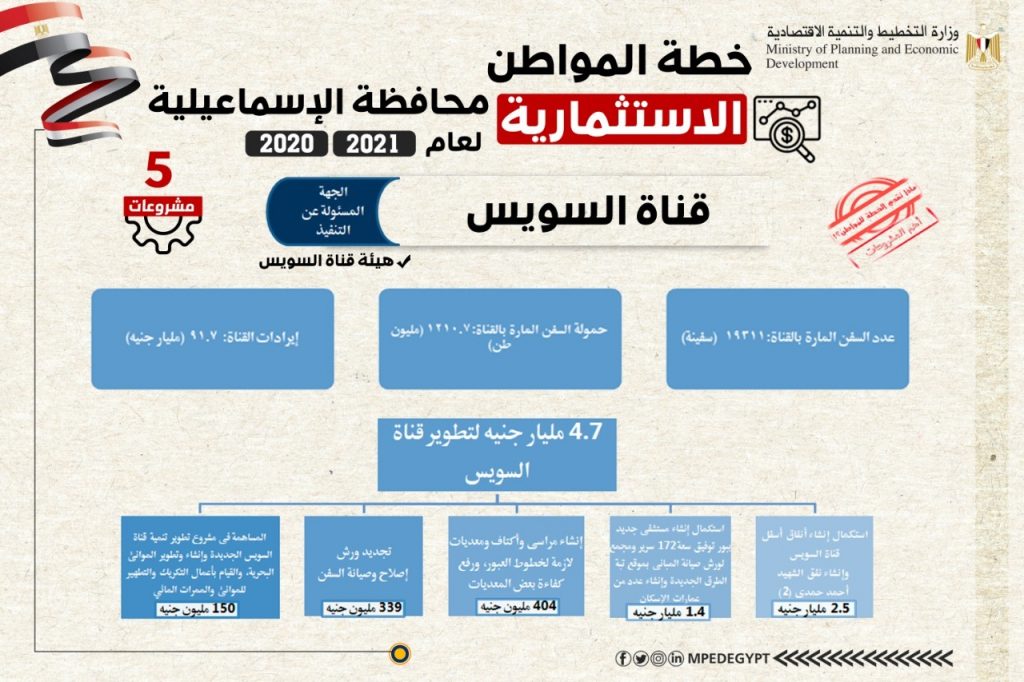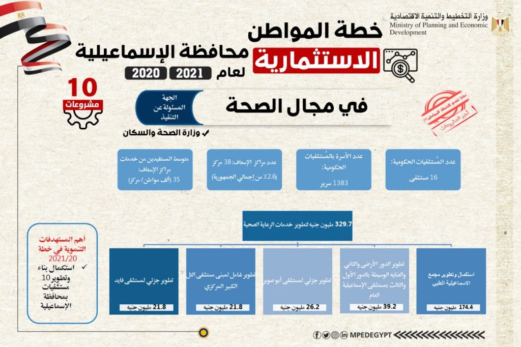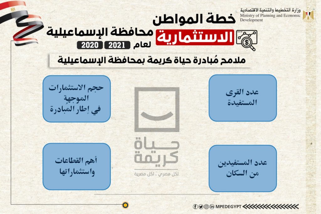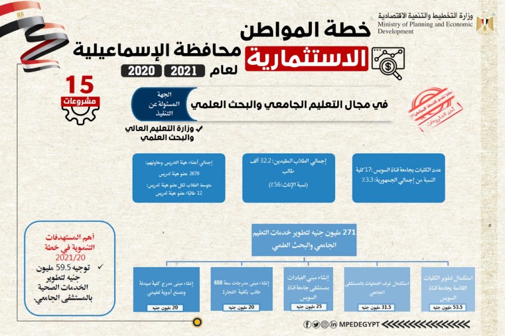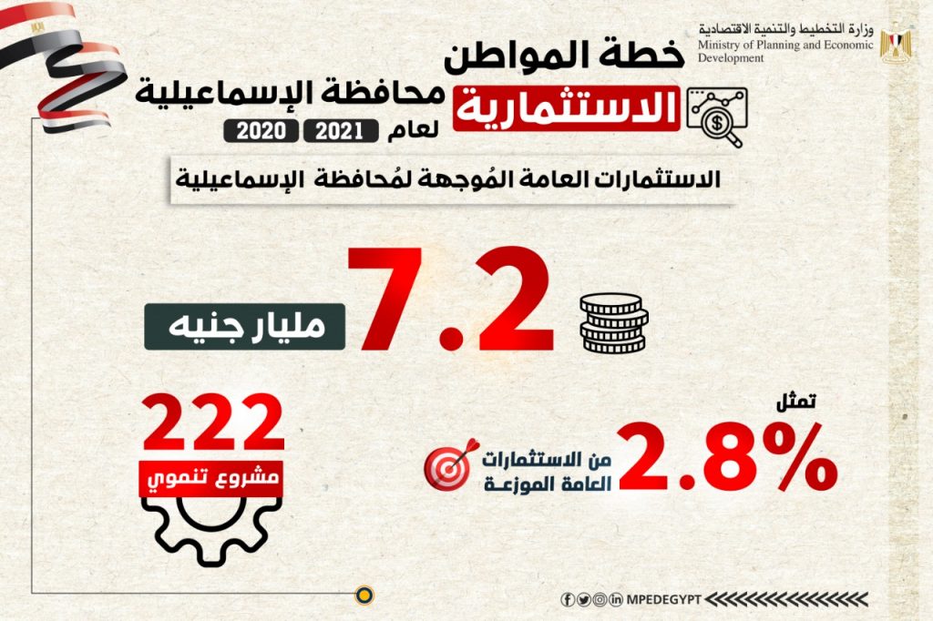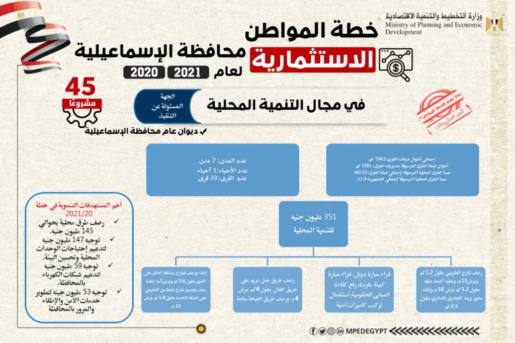 بالإنفوجراف .. وزارة التخطيط تستعرض ملامح “خطة المواطن الاستثمارية” في محافظة الاسماعيلية للعام المالي 20/2021