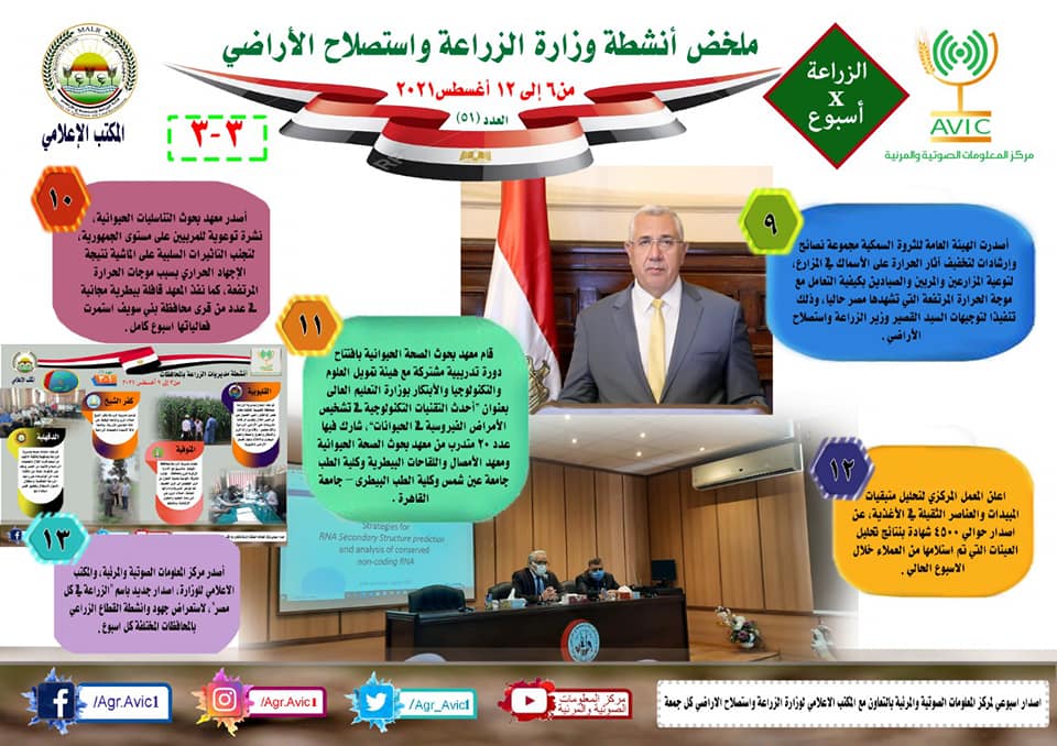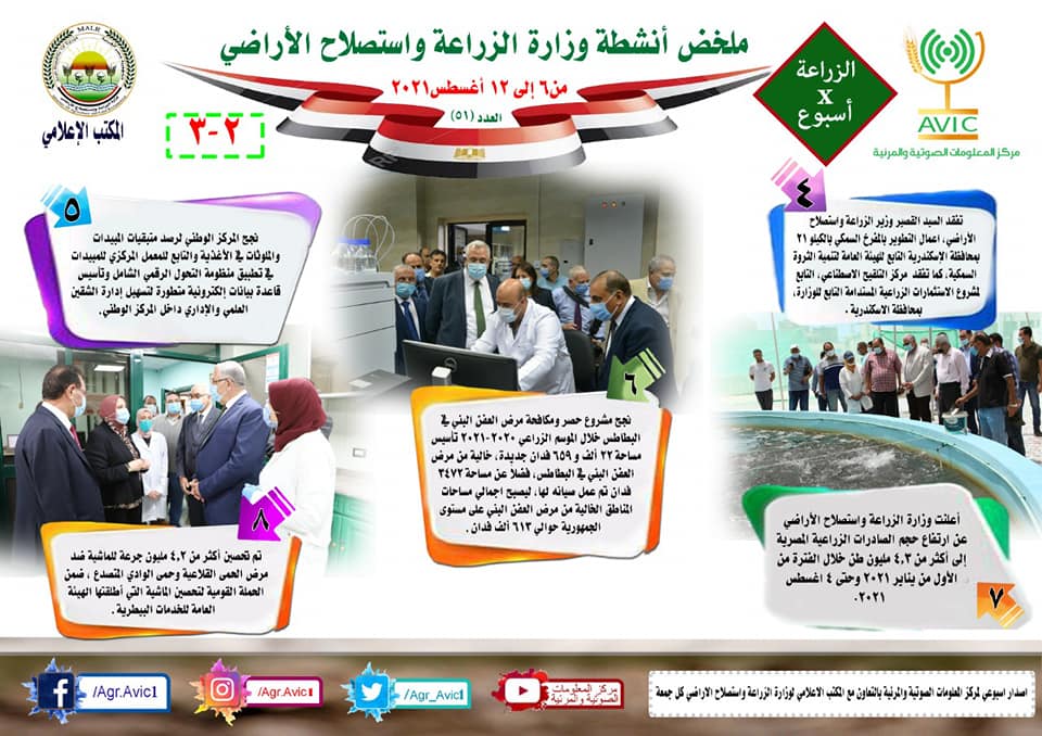 بالانفوجراف .. الحصاد الأسبوعي لأنشطة وزارة الزراعة في الفترة من ٦ إلى ١٢ أغسطس