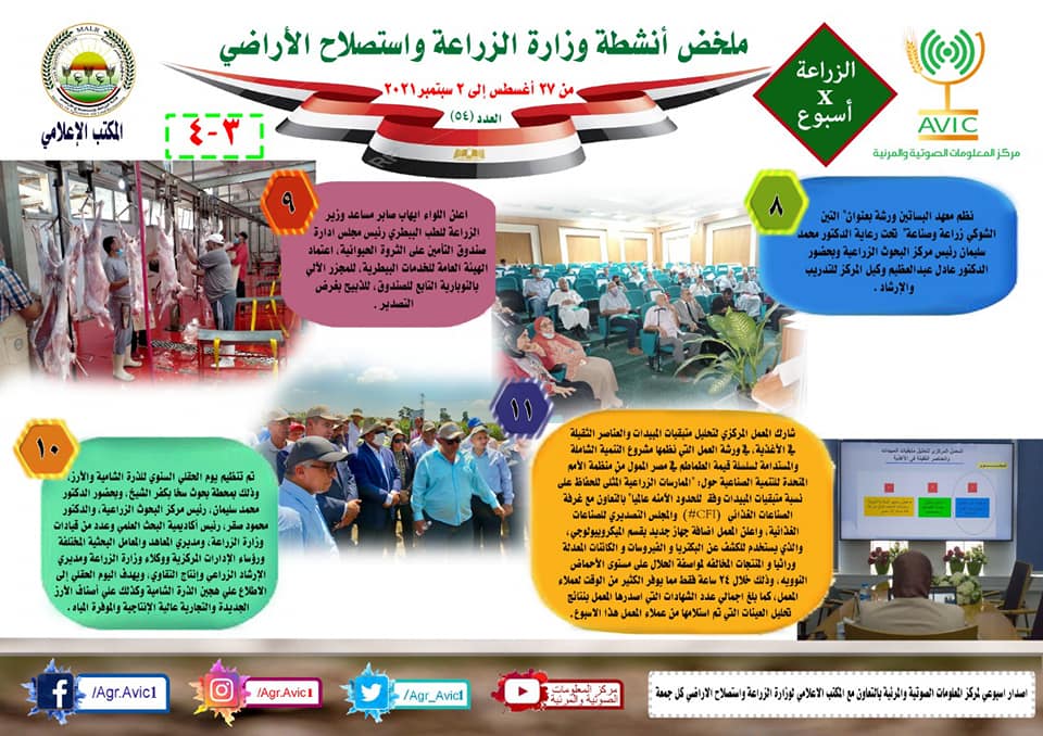 بالانفوجراف.. “الزراعة” تنشر الحصاد الأسبوعي للوزارة في أسبوع