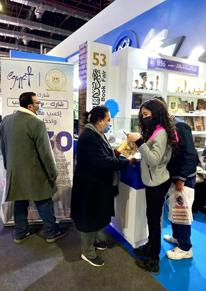 شهد جناح وزارة السياحة والآثار المشارك بمعرض القاهرة الدولي للكتاب في دورته 53 بمركز مصر للمعارض الدولية، إقبالًا كبيرا من رواد المعرض من مختلف الفئات العمرية، كما حظيت المسابقات اليومية والمسابقة الكبرى “اعرف بلدك” التي ينظمها الجناح على نسبة مشاركة مرتفعة؛ حيث فاز العديد من المشاركين بالجوائز اليومية التي تتمثل في مستنسخات أثرية وكتيبات تعليمية وسياحية عن تاريخ مصر العريق ومعالمها السياحية.