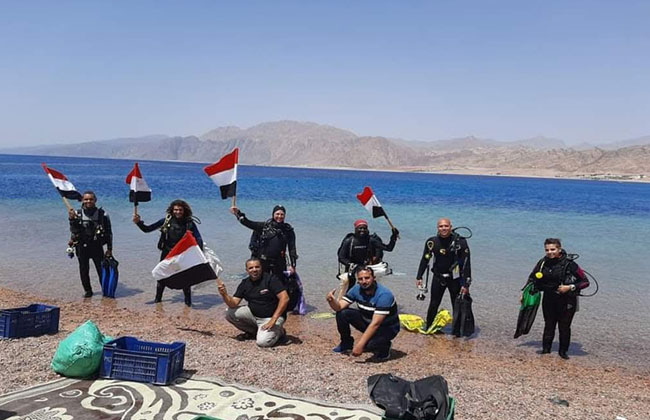 بالصور.. استمرار مبادرة تطهير قاع البحر بشواطىء مدينة دهب