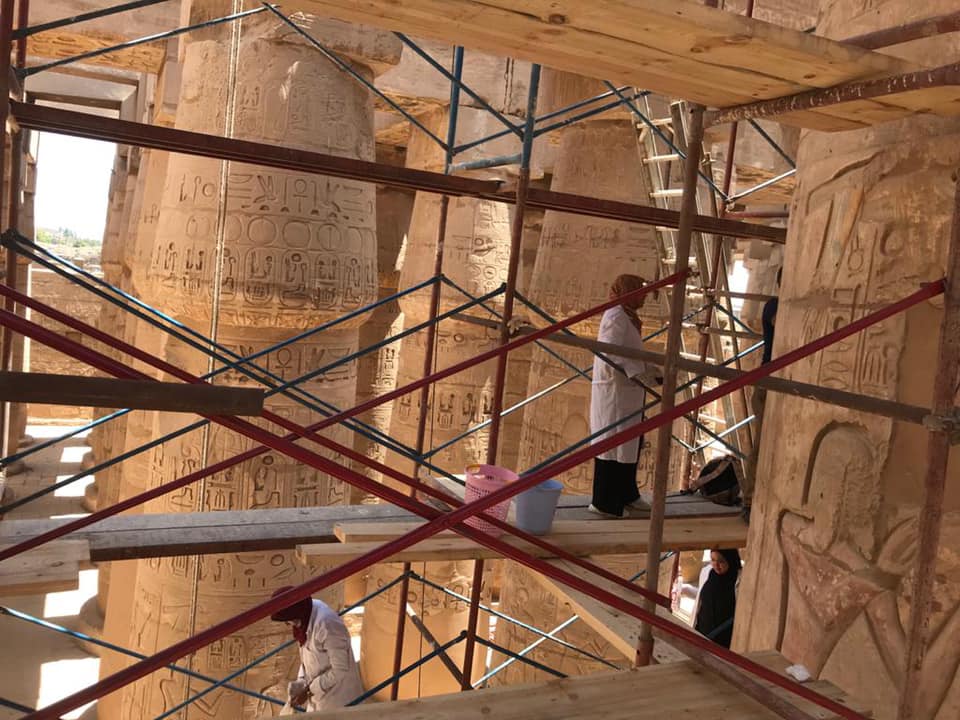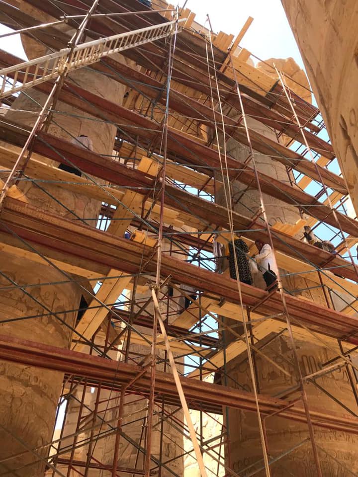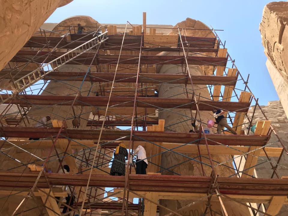 بالصور.. الآثار:ترميم صالة الأعمدة الكبرى لمعبد الكرنك تمهيدا لاحتفالية تطوير طريق الكباش