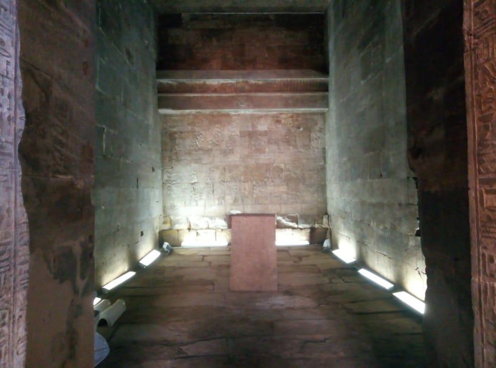 جدير بالذكر أنه تم اكتشاف المعبد عام ١٨٧١م ويبلغ طوله حوالي ١٩م، وشيده الملك بطليموس الثالث لعبادة الهه ايزيس وثالوث أسوان، ولم يكتمل بنائه. بُني من الحجر الرملي وله بابان، الباب الرئيسي متوج بحلية يعلوها قرص الشمس المجنح ندخل منه إلى صالة يفتح عليها ثلاث حجرات، وفي الجدار الشرقي من الحجرة الوسطى ”قدس الأقداس“ نقشت بعض المناظر الخاصة بتقديم القرابين.