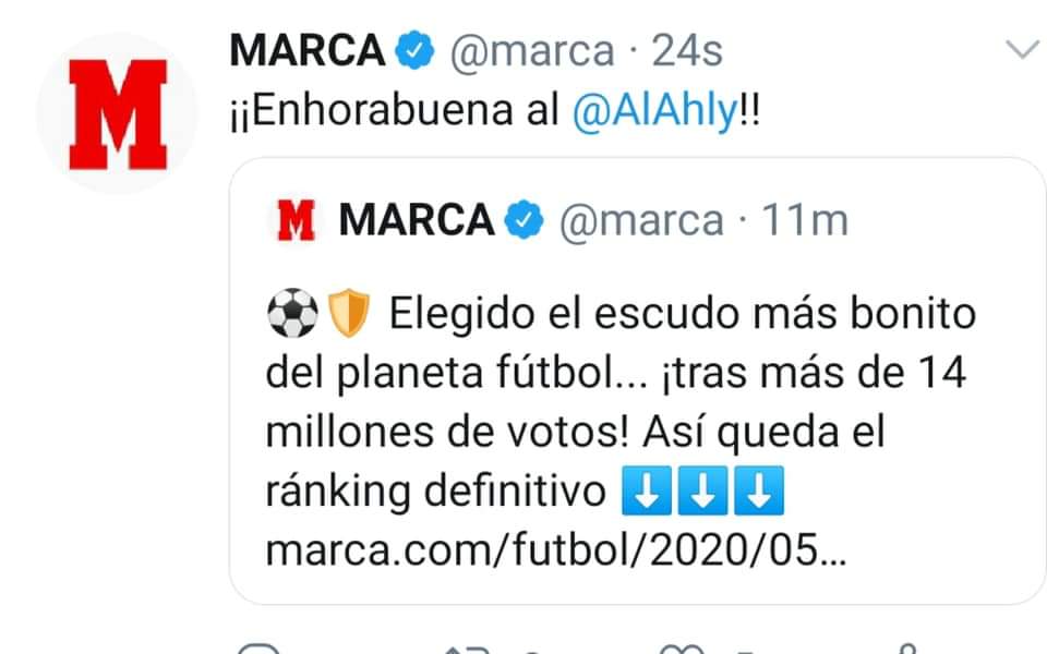 بالصور .. الأهلى يفوز رسمياً باستفتاء “Marca” كأجمل شعار فى العالم