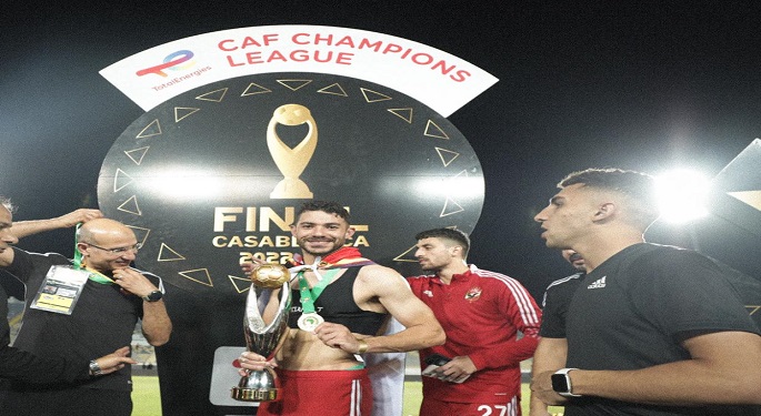 بالصور.. الأهلي يحتفل بتجديد عقود الشحات وربيعة وياسر إبراهيم بصورة مع كأس أفريقيا
