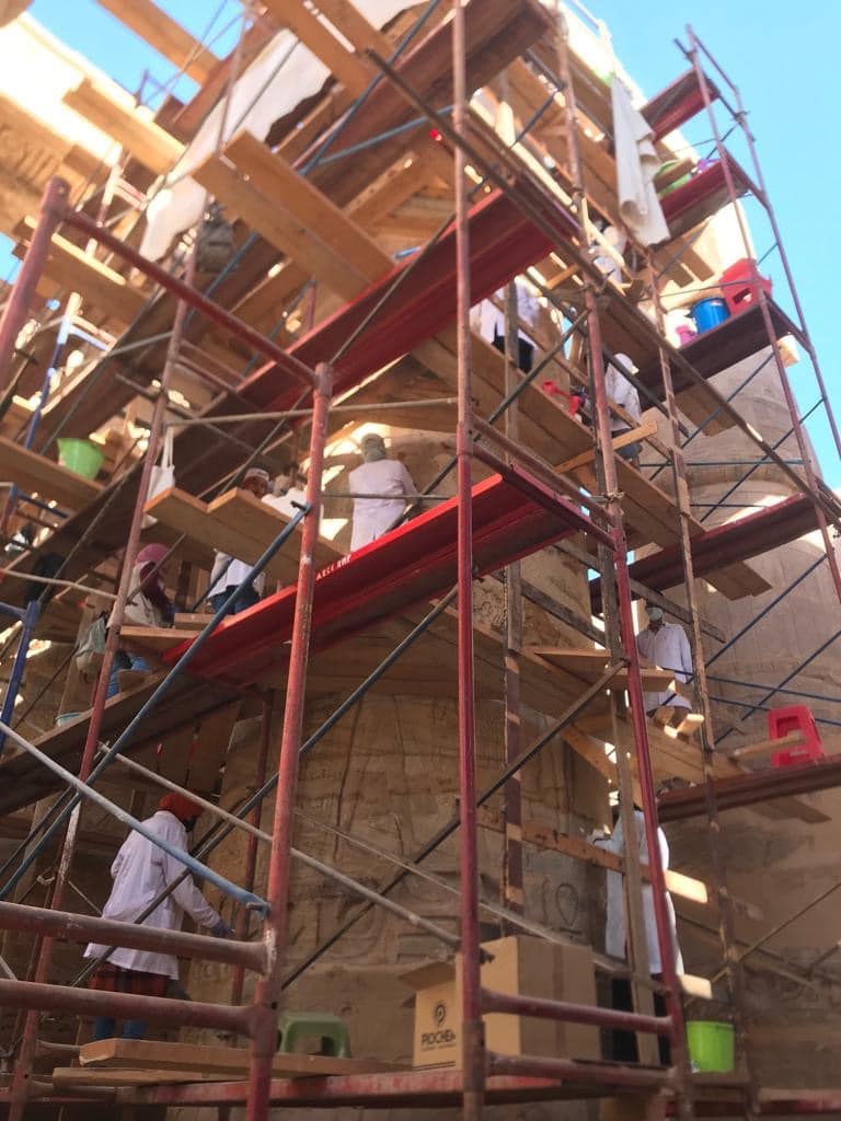 إنتهي فريق العمل من مرممي المجلس الأعلى للآثار من أعمال تنظيف وإزالة الإتساخات من 37 عمود من صالة الأعمدة الكبري بمعابد الكرنك بمحافظة الأقصر، ما يأتي في إطار مشروع ترميم معابد الكرنك.