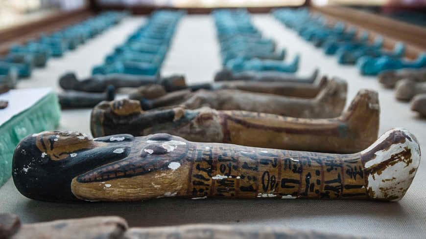 وقد ضم المعرض 90 قطعة أثرية من نتاج أعمال حفائر البعثة التشيكية في منطقة أبو صير الأثرية؛ من بينها رأس تمثال للملك “رع-نفر-اف”، ومجموعة من التماثيل من الدولة القديمة منها تمثال لكاتب وتماثيل لكبار رجال الدولة والموظفين ومجموعة من الأواني الكانوبية، بالإضافة إلى عشرة تماثيل اوشابتي من الفيانس.