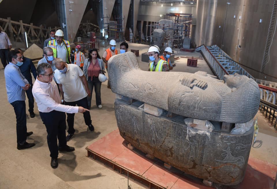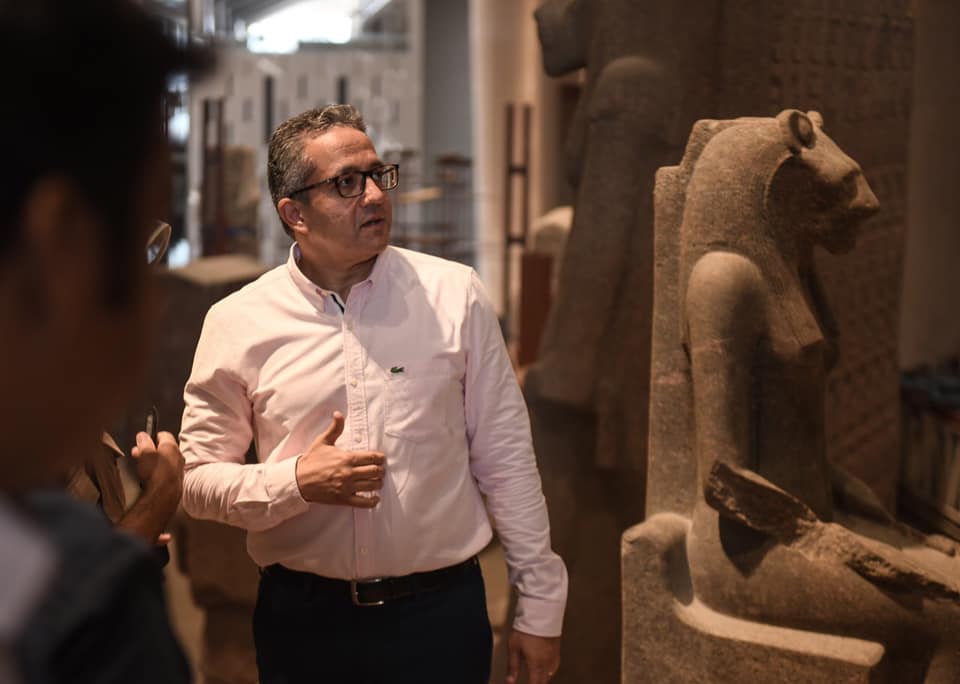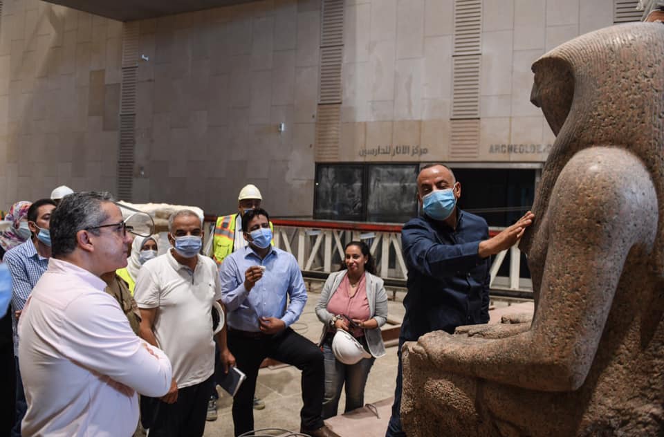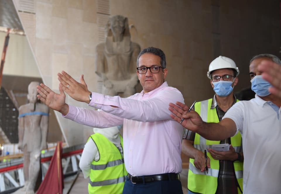 بالصور.. العناني يتابع اللمسات النهائية للعرض المتحفي بالدرج العظيم وقاعتي الملك توت عنخ آمون بالمتحف الكبير