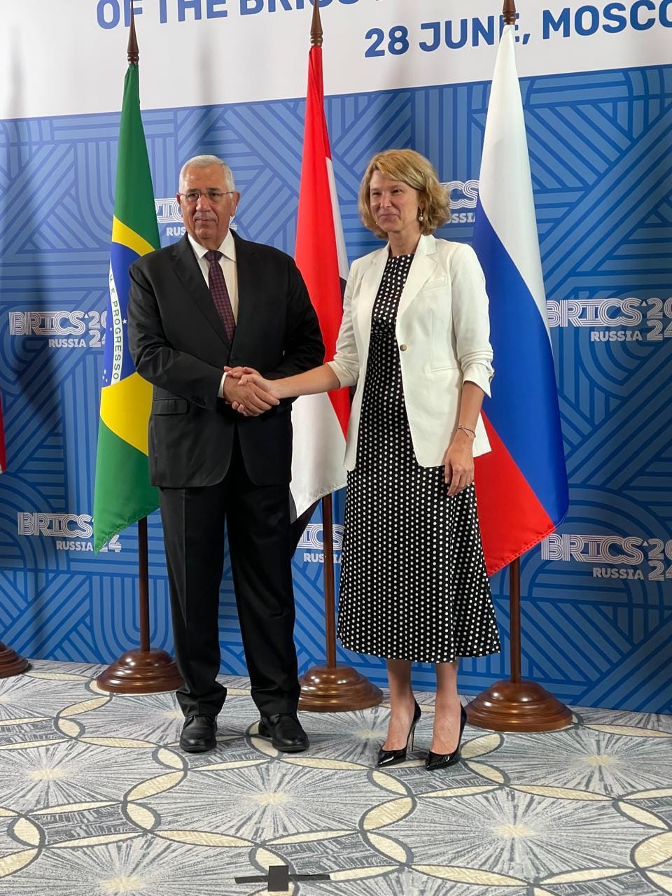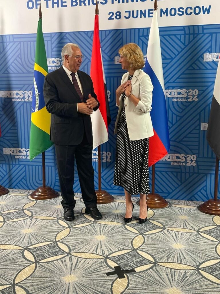 على هامش مشاركته في الاجتماع الوزاري الرابع عشر لوزراء الــزراعة لتجمع بريكس بالعاصمة الروسية موسكو، التقى السيد القصير وزير الزراعة واستصلاح الأراضي مع اوكسانا لوت وزيرة الزراعة بروسيا الاتحادية وبحث معها آفاق التعاون المشترك بين البلدين .