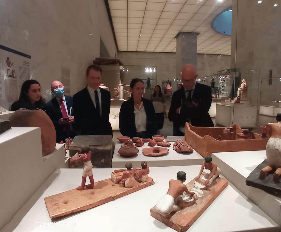 وقد قام أعضاء الوفدين بجولة تفقدية لقاعات المتحف للتعرف على ما يعرضه من قطع وكنوز أثرية وخاصة قاعة المومياوات الملكية، هذا بالإضافة إلى تفقد معامل الترميم بالمتحف للتعرف على إسلوب العمل بالمعمل والتقنيات الحديثة المتبعة للترميم والحفاظ على القطع الأثرية والمومياوات.
