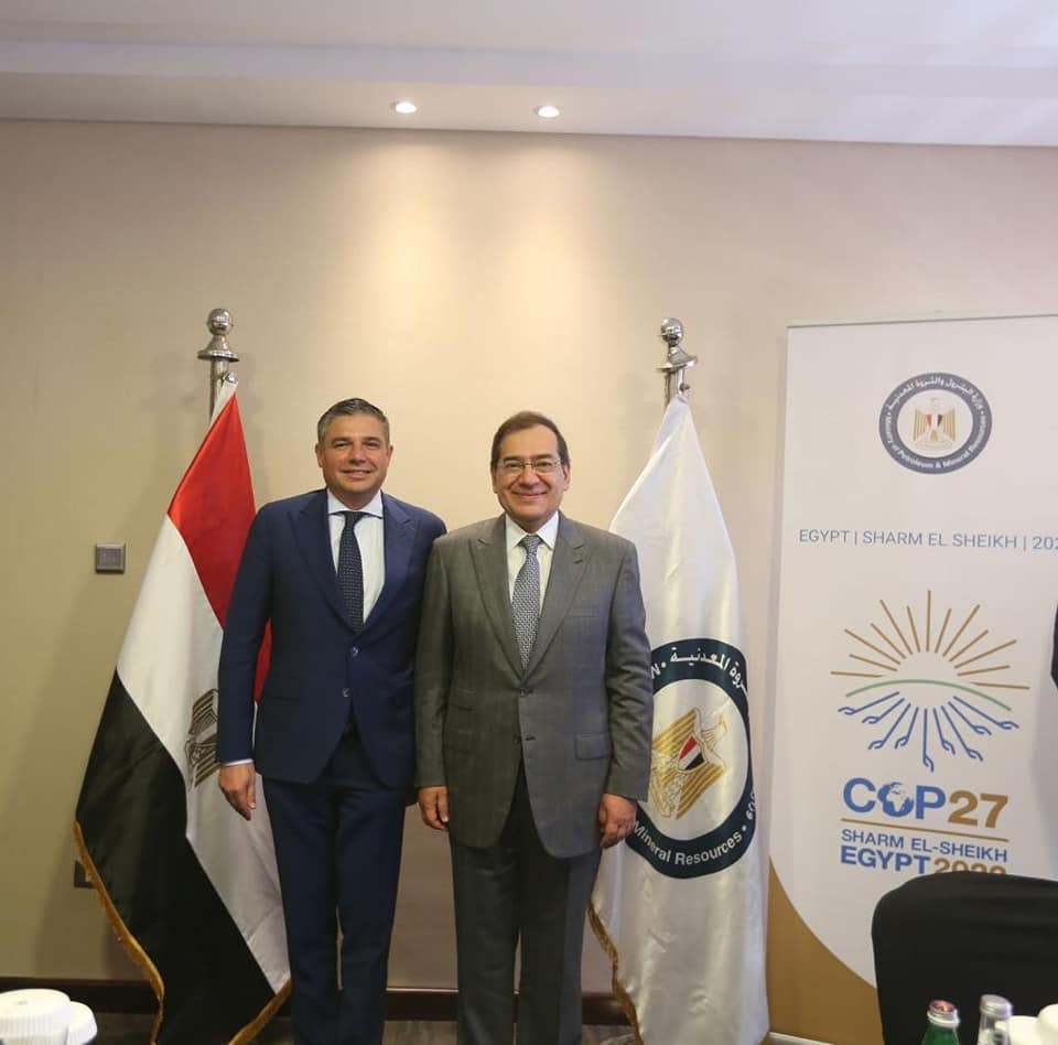 عقد المهندس طارق الملا وزير البترول والثروة المعدنية جلسة مباحثات في شرم الشيخ مع السيد لورينزو سيمونيلى الرئيس التنفيذي لشركة بيكرهيوز العالمية والوفد المرافق له وذلك على هامش انعقاد قمة الأمم المتحدة للمناخ COP27 ، حيث بحثا خلالها فرص تطوير التعاون المشترك و الاستفادة من البنية التحتية في ظل دور مصر كمركز محورى لتداول وتجارة الغاز الطبيعى إلى جانب التعاون في مجال خفض الانبعاثات الكربونية.