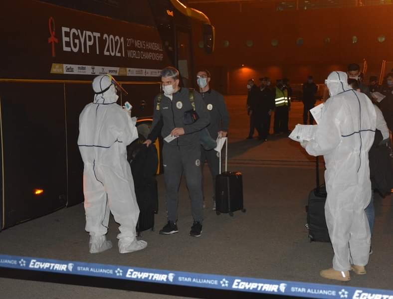 استقبل مطار القاهرة الدولي، صباح اليوم الاثنين، بعثة منتخب الأرجنتين، للمشاركة فى بطولة كأس العالم لكرة اليد التى ستقام فى مصر خلال الفترة من 13 إلي 31 يناير الجارى على متن الطائرة التركية رقم 692، وذلك وسط إجراءات احترازية مشددة لمواجهة انتشار فيروس كورونا المستجد.