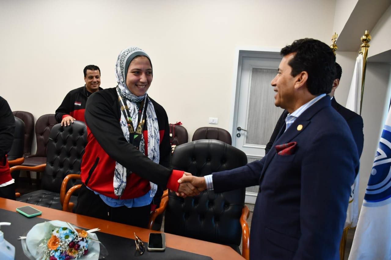 بالصور.. بعد تتويجها ببرونزية بطولة العالم للجودو للشباب.. وزير الرياضة يهنئ صفا سليمان