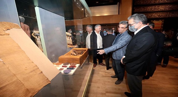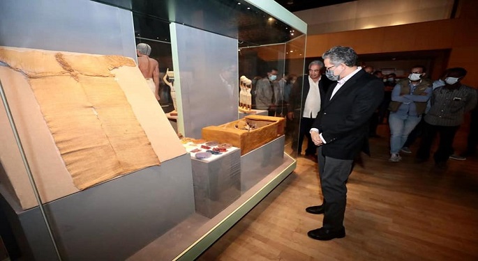 و خلال جولته داخل قاعة النسيج تفقد وزير السياحة والآثار مستجدات الأعمال و ماتم من تعديلات في سيناريو العرض المتحفي، والقطع الأثرية التي تم إضافتها لإثراء محتوى العرض، كما وجه بسرعة الانتهاء من وضع البطاقات التعريفية للقطع الأثرية والعمل على قدم وساق للانتهاء من كافة الأعمال وفقا للجدول الزمني المقرر.