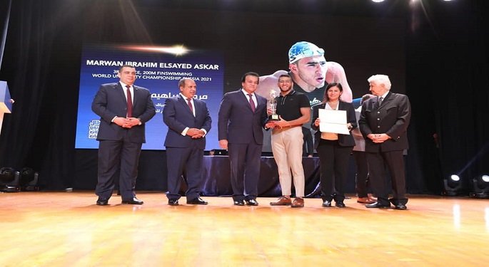 ومن جانبه، أعرب د. محمد صبحي حسانين، نائب رئيس الاتحاد العربي والمصري للرياضة الجامعية، عن سعادته بطلاب الجامعات المصرية، لما حققوه من إنجازات، ورفع اسم مصر عاليًا بين دول العالم، بمختلف المحافل والمسابقات العالمية من بطولات الجامعات العربية والإفريقية وبطولات العالم للجامعات والدورات الأوليمبية، لافتًا إلى أن هذا ثمار ما تم بذله من جهد وتحفيز من القيادة السياسية، والتشجيع الشخصي من السيد الرئيس/ عبدالفتاح السيسي رئيس الجمهورية، من خلال اهتمام سيادته بالرياضة لطلاب وطالبات الجامعات والمعاهد المصرية وذلك باعتبار أن “الرياضة أمن قومي”.