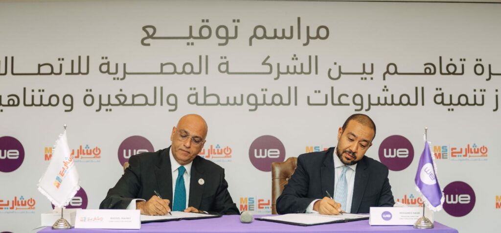 وقع جهاز تنمية المشروعات والشركة المصرية للاتصالات أول مشغل اتصالات متكامل في مصر مذكرة تفاهم وذلك لدعم أصحاب المشروعات ورواد الاعمال والشركات الناشئة وتشجعيهم على الاندماج في القطاع الرسمي من خلال تقديم باقات متميزة لخطوط الهاتف المحمول وخدمات الانترنت الثابت مما يسهم في تعزيز قدرتهم على المنافسة بالأسواق المحلية والعالمية بما يتوافق مع النظم التكنولوجية الحديثة.