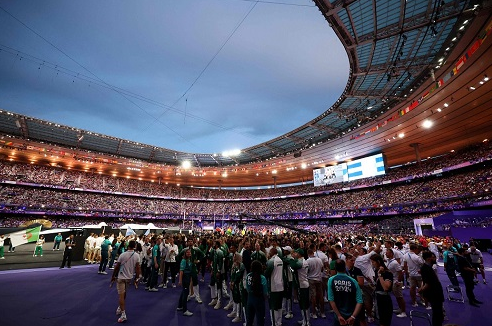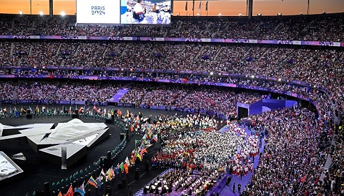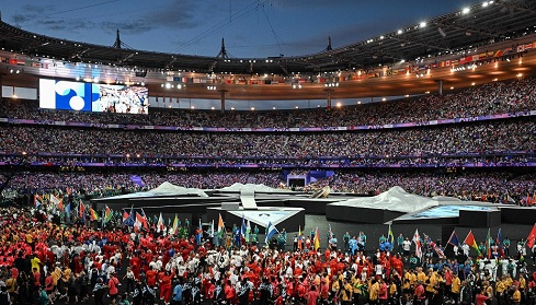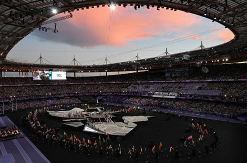 وسيؤدي قرابة 270 فنانا وراقصاً عروضاً راقصة وفنية، في حين توالى دخول البعثات الرياضية التي شاركت في العرس الأولمبي مع ما يقارب 9000 رياضي ورياضة على وقع اشهر الأغنيات الفرنسية والإنجليزية، منها “نحن الأبطال” للمغني فريدي ميركوري “كوين”.