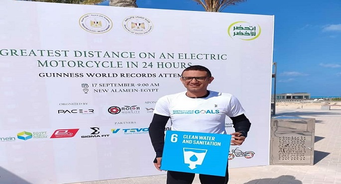 وقد أصدرت موسوعة جينيس بيانا اكدت فيه على تحقيق المغامر المصرى أكبر مسافة على دراجة نارية كهربائية في 24 ساعة (فردي) يوم 17سبتمبر 2021 وأن هذا الحدث يأتى ضمن المبادرة الرئاسية “اتحضر للأخضر” وتحت رعاية وزارة البيئة ووزارة الشباب والرياضة وبحضور العديد من المسؤولين الحكوميين وممثلي وسائل الاعلام .