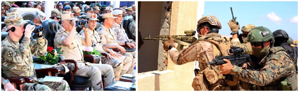 شهد رئيس أركان حرب القوات المسلحة الفريق أحمد خليفة تنفيذ أحد الأنشطة التدريبية الرئيسية للتدريب المصرى الأمريكى المشترك “النجم الساطع – 2025” والمتمثلة فى تنفيذ تدريب عملى للقضاء على بؤرة إرهابية مسلحة وتطهيرها من كافة العناصر الإرهابية وتأمين عودة الحياة إلى طبيعتها.