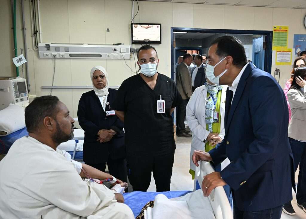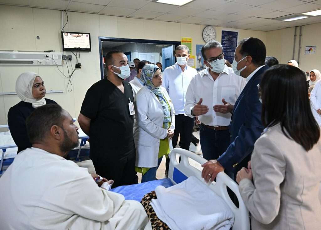 ولدى وصول رئيس الوزراء إلى المستشفى، قدّم الدكتور خالد عبدالغفار عرضًا حول الخريطة الصحية لمحافظة البحيرة، موضحًا أن المحافظة تضم 75 مستشفى، بإجمالي 5418 سريرًا، من بينها 865 سرير رعاية مركزة (كبار وأطفال)، كما تضم مسشتفيات المحافظة 32 بنك دم (كبار وأطفال)، و274 غرفة عمليات، و1124 ماكينة غسيل كلوي، و470 جهاز تنفس صناعي، و774 حضّانة أطفال.