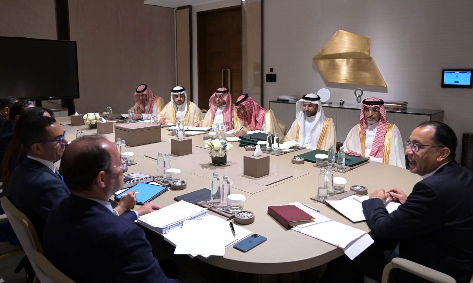 التقي الدكتور مصطفي مدبولى، رئيس مجلس الوزراء، مساء اليوم الأول لزيارته الحالية للرياض، السيد محمد بن عبدالله الجدعان، وزير المالية السعودي والوفد المرافق له؛ لبحث عدد من ملفات الشراكة، وذلك بحضور السيد أحمد كجوك، وزير المالية، والمهندس حسن الخطيب، وزير الاستثمار والتجارة الخارجية، والسفير صالح بن عيد الحصيني، سفير المملكة العربية السعودية لدى مصر.