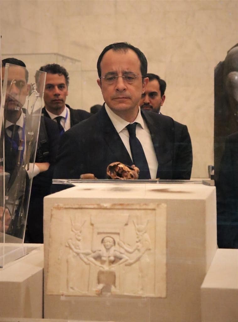وفي نهاية الزيارة، أعرب رئيس جمهورية قبرص عن إعجابه الشديد بالمتحف وطابعه المتميز عن باقي متاحف العالم حيث يحقق تكاملا ليس له مثيل من العراقة والتاريخ والتراث مع التطور التكنولوجي والحداثة في طريقة العرض المتحفي.