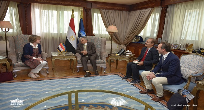 وفي ختام اللقاء، أهدى الفريق أسامة ربيع درع قناة السويس الجديدة إلى سابين دي لاروشيفوكود، وعقب ذلك قام الوفد بعمل زيارة ميدانية شملت قاعات المتحف العالمي لقناة السويس، واستراحة ديليسبس، واستاد القناة الدولي، تلاها القيام بجولة بحرية في قناة السويس الجديدة.