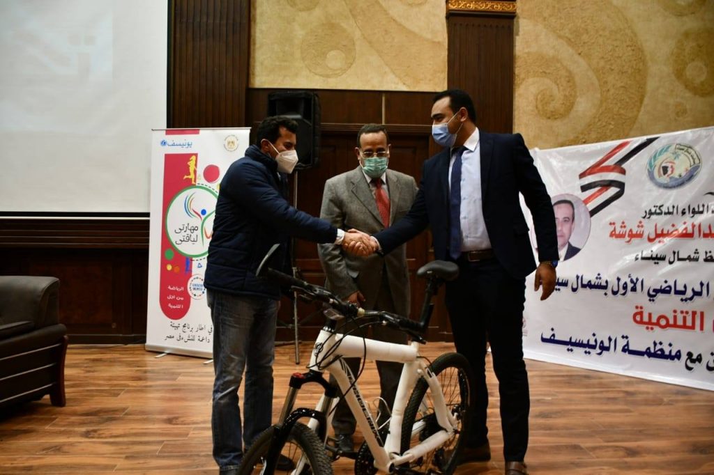 أطلق الدكتور أشرف صبحي وزير الشباب والرياضة، اليوم بمحافظة شمال سيناء، وبحضور اللواء محمد عبدالفضيل شوشة محافظ شمال سيناء، برنامج الرياضة من اجل التنمية، الذى تنفذه الوزارة بالتعاون مع منظمة اليونسيف لتدريب الفتيات على المهارات الحياتية والمجتمعية من خلال ممارسه الرياضة.