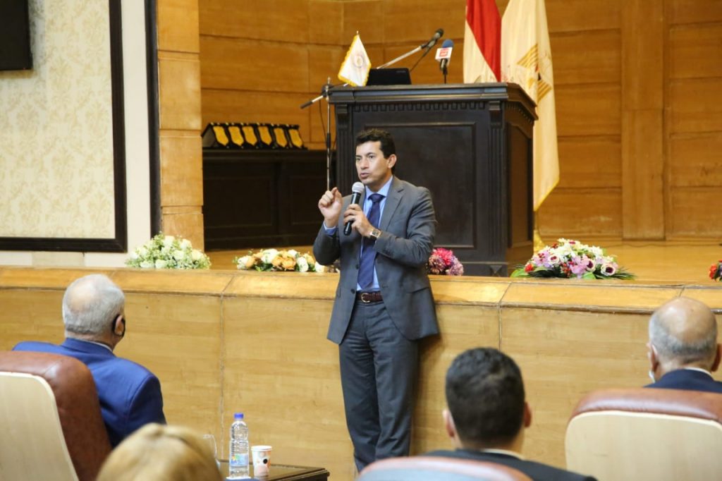 وفى الكلمة الافتتاحية للمؤتمر، لفت الدكتور أشرف صبحي إلى اهتمام السيد الرئيس عبد الفتاح السيسى رئيس الجمهورية بالشباب المصري، والحرص على تنمية مهاراتهم، وتمكينهم في شتى المجالات، مشيراً أنه لابد أن نتفق جميعاً على تسخير قدراتنا في خدمة وطننا، والعمل على تطوير الذات بالعلم، والدراسة، ومواجهة التحديات.