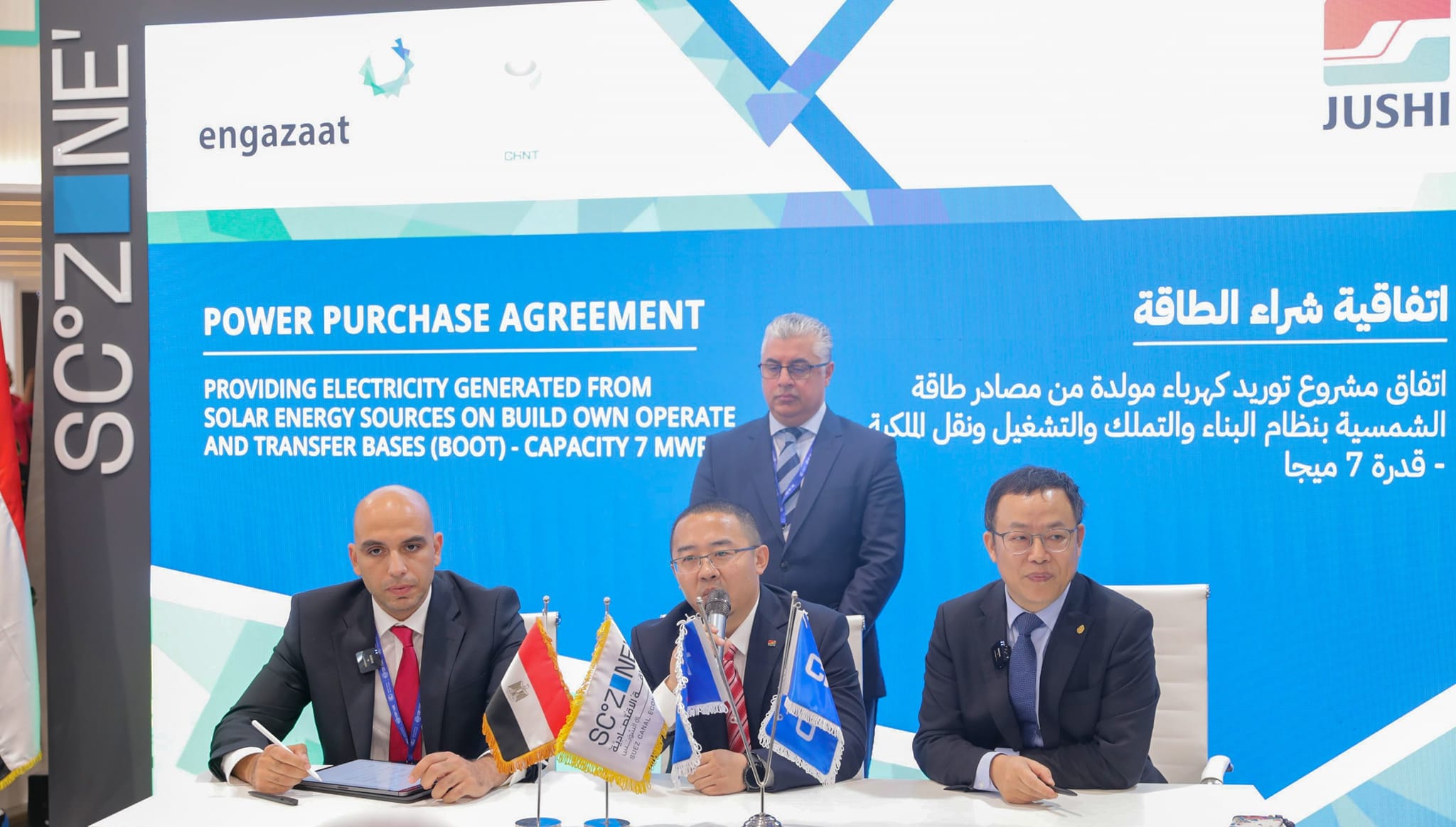 فيما شهد رئيس الهيئة وليد جمال الدين عددا من التوقيعات، أولها توقيع اتفاق مشروع توريد كهرباء مولدة من مصادر طاقة شمسية قدرة 7 ميجا لصالح شركة جوشي، تسند بمقتضاه شركة جوشي مشروع محطات الطاقة الشمسية الفوتوفولتية بمصنعها لتحالف شركة إنجازات وشركة CHINT Global.