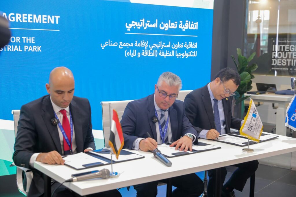 على هامش فعاليات قمة المناخ COP28 ، وقع وليد جمال الدين، رئيس الهيئة العامة للمنطقة الاقتصادية لقناة السويس، ومحمد الدمرداش، العضو المنتدب لشركة إنجازات، وجيف كاي، مدير عام شركة تشنت جلوبال ، اليوم الثلاثاء، على اتفاقية تعاون استراتيجي، بهدف تطوير، وإنشاء وتشغيل مجمع صناعي متكامل لتكنولوجيا الطاقة الخضراء على مساحة إجمالية ٢ مليون متر مربع، داخل المنطقة الاقتصادية لقناة السويس بنظام المطور الصناعي ، على أن يتم توقيع الاتفاقية الإطارية والانتهاء من دراسات الجدوى الفنية والمالية خلال عام ٢٠٢٤، وقد تم التوقيع داخل جناح الهيئة بالمنطقة الخضراء.