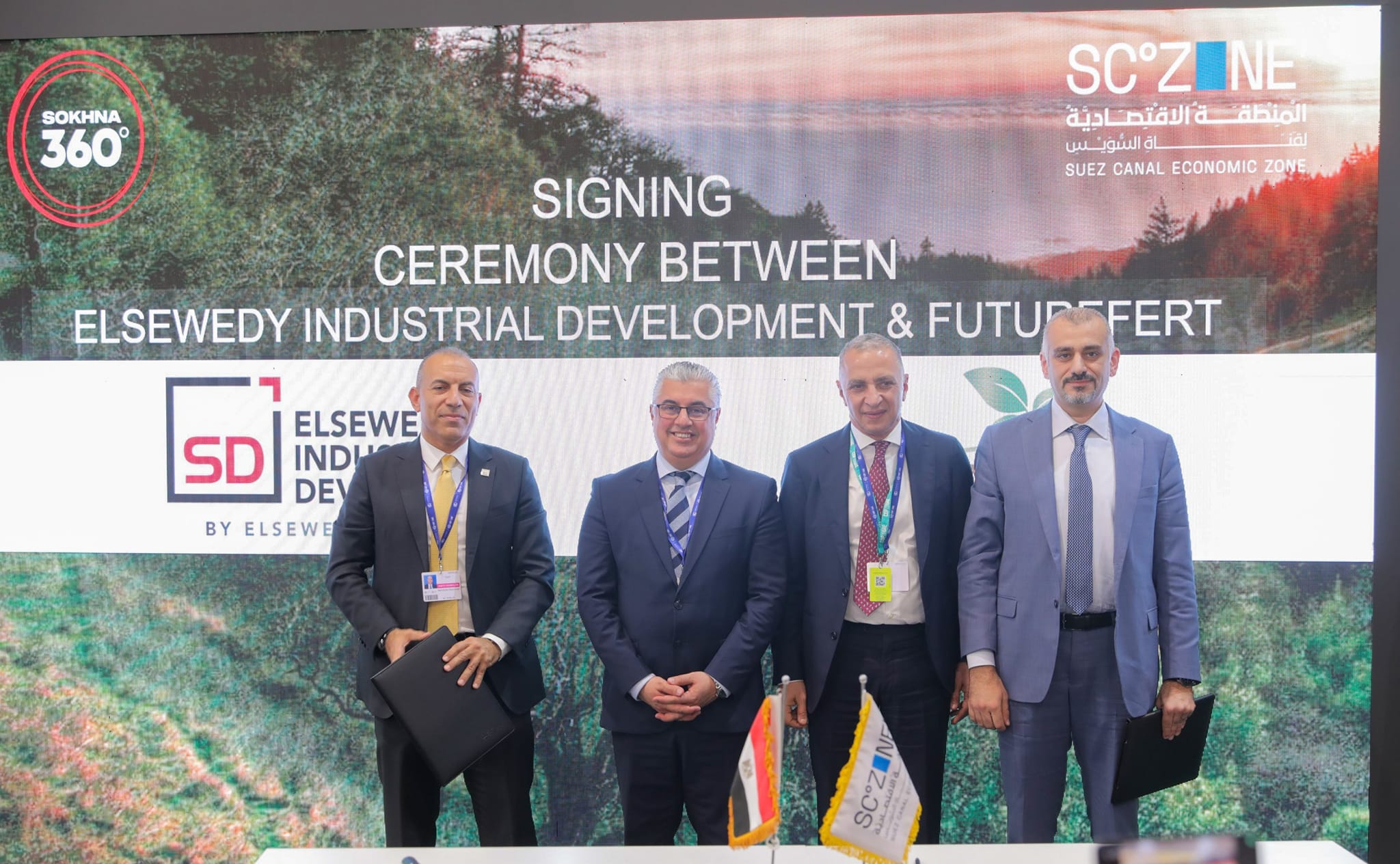 وشهد أيضاً توقيع عقد تخصيص قطعة أرض صناعية بين شركة السويدي للتنمية الصناعية، إحدى الشركات التابعة لشركة السويدي اليكتريك، وشركة فيوتشرفيرت المملوكة لشركة شرقية هولدينج ليمتد بالإمارات العربية المتحدة، وذلك لإنتاج مواد المغذيات الزراعية على مساحة 127 ألف متر مربع داخل مشروع “السخنة360”، يستهدف التعاون بين الطرفين استثمار شركة فيوتشرفيرت مصر ما يصل إلى 50 مليون دولار للمرحلتين الأولى والثانية، لإنتاج مغذيات زراعية بطاقة 300 ألف طن في المرحلة الأولى.