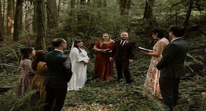 بالصور.. فرح بأقل التكاليف.. عروسان يقيمان حفل زفافهما في غابة بأمريكا