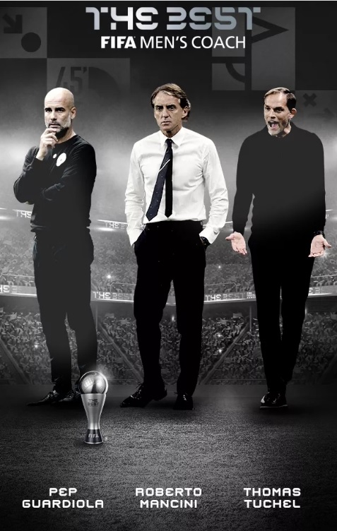 وتواجد في القائمة النهائية الإيطالي روبرتو مانشيني، مدرب منتخب إيطاليا، والإسباني بيب جوارديولا، مدرب مانشستر سيتي، إضافة إلى الألماني توماس توخيل مدرب تشيلسي.