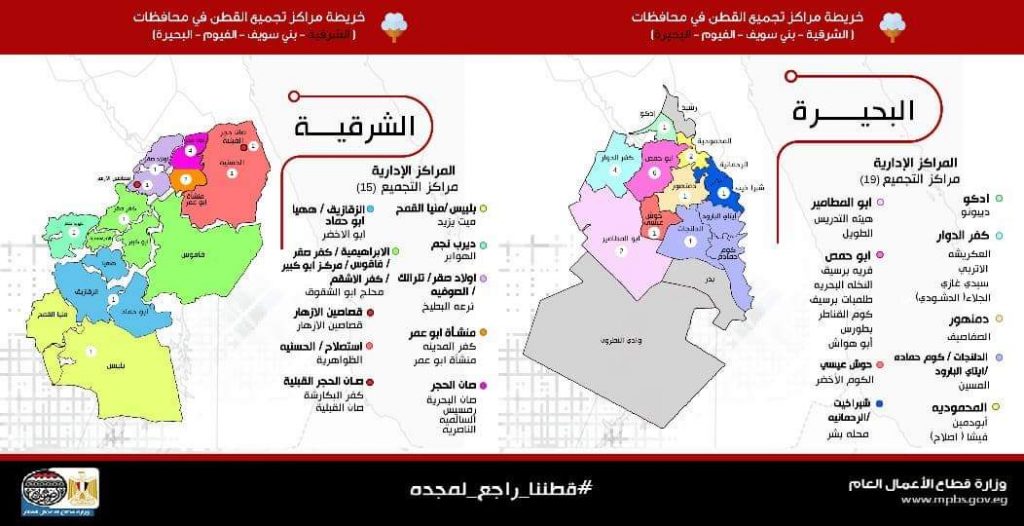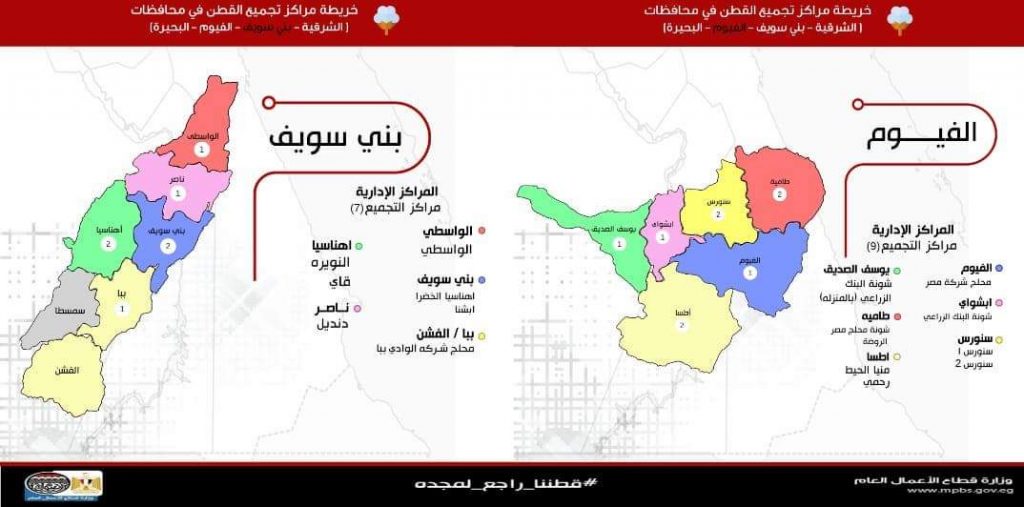 في الفيوم، تم استلام 18333 كيس من المزارعين بوزن 21.6 ألف قنطار، أما في بني سويف فقد تم استلام 11613 كيس بوزن 13.9 ألف قنطار, وذلك منذ بدء المنظومة الجديدة في المحافظتين في الأول من سبتمبر الماضي والتي تستمر بهما حتى نهاية أكتوبر الجاري.
