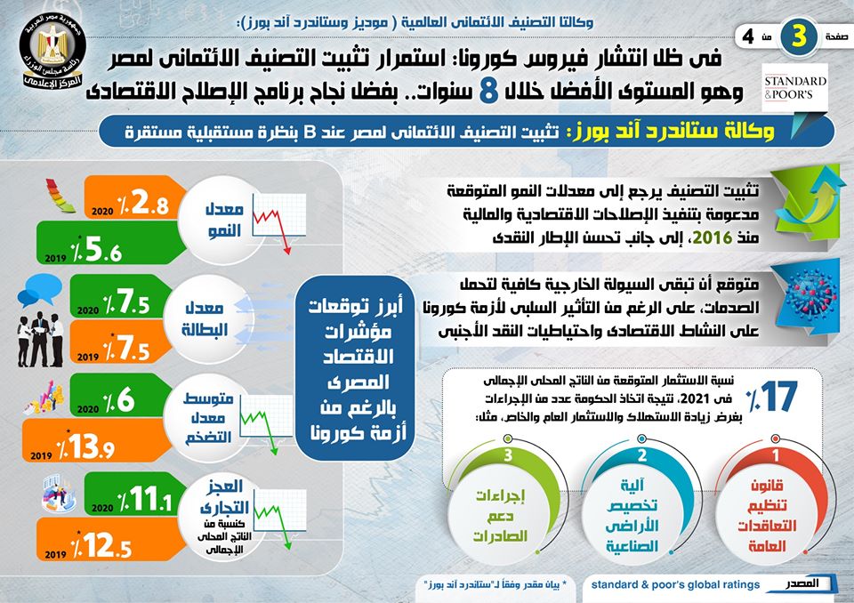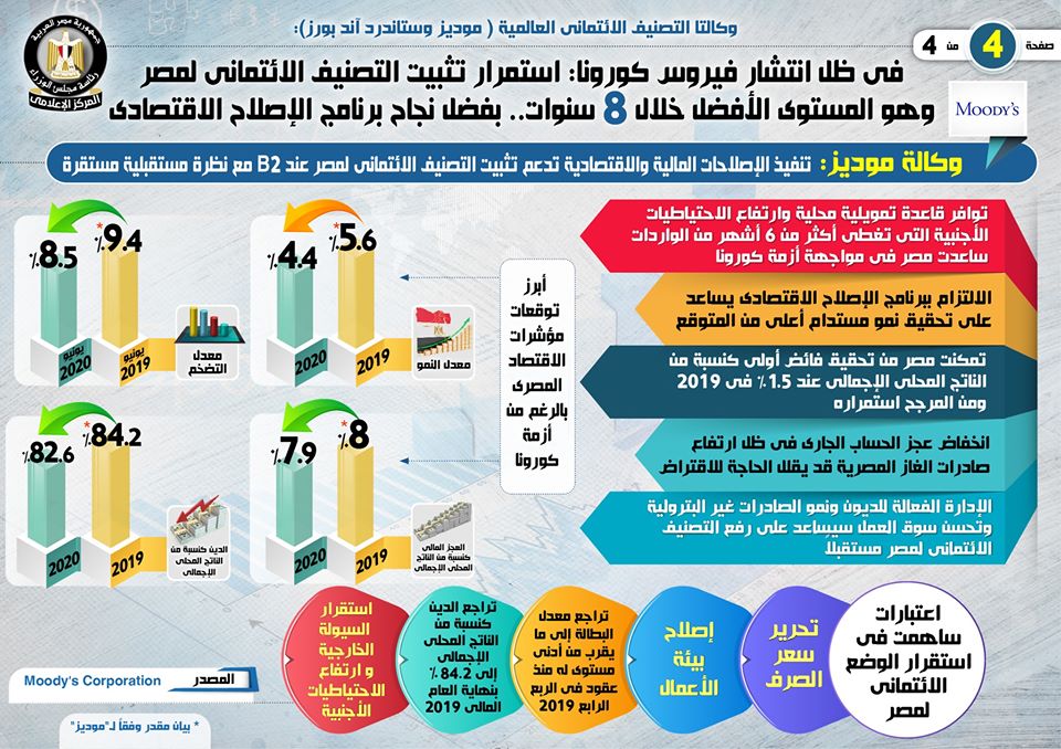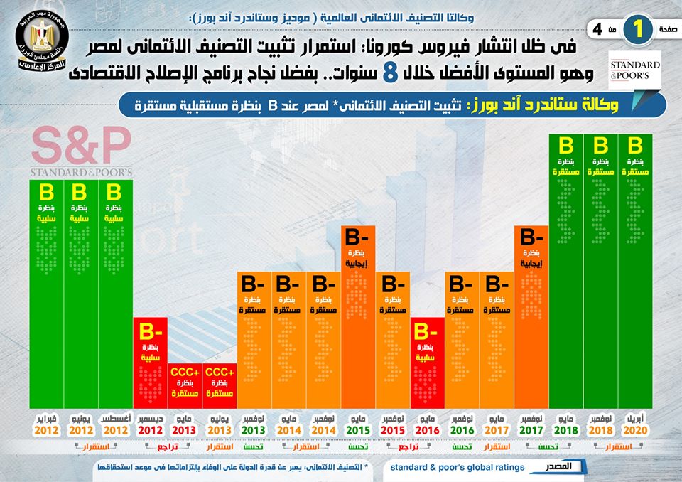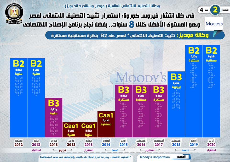 بالإنفوجراف .. مجلس الوزراء: استمرار تثبيت التصنيف الائتماني لمصر من قبل “موديز وستاندرد آند بورز”