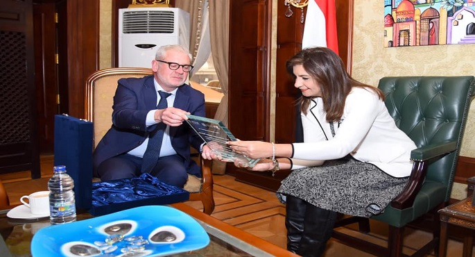 استقبلت السفيرة نبيلة مكرم عبد الشهيد، وزيرة الدولة للهجرة وشئون المصريين بالخارج، السيد/ لوران دي بويك رئيس بعثة منظمة الهجرة الدولية في مصر، وذلك بحضور السفير محمد خيرت مساعد الوزيرة للتعاون الدولي.