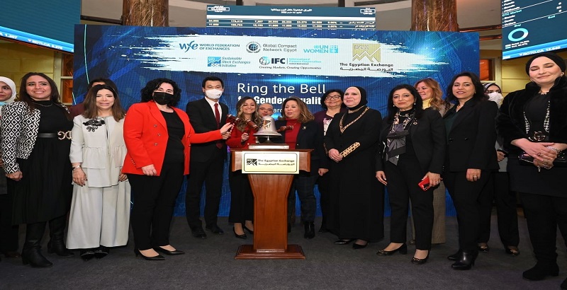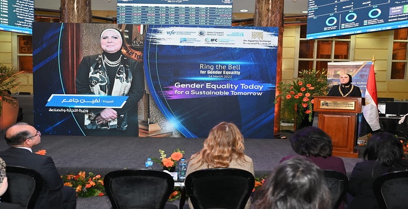 وفي نهاية الاحتفالية شهدت السيدة/ نيفين جامع وزيرة التجارة والصناعة والدكتور/ محمد فريد، رئيس البورصة المصرية قرع جرس بدء جلسة التداول بالبورصة المصرية، دعماً للمساواة بين الجنسين وتمكين المرأة فى مصر.