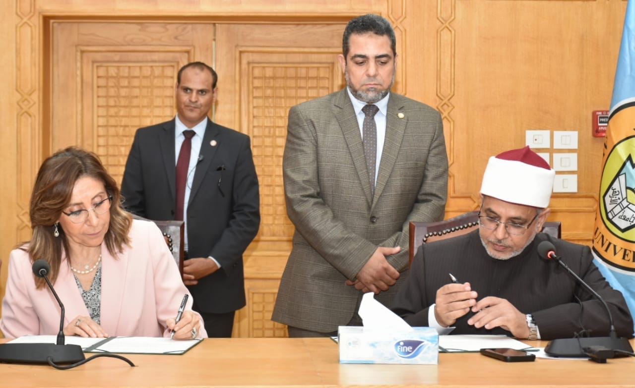 وقعت الدكتورة نيفين الكيلاني، وزيرة الثقافة، والدكتور سلامة جمعة داود، رئيس جامعة الأزهر بروتوكول تعاون بين الوزارة والجامعة، يهدف إلى تعزيز وتدعيم أوجه الشراكة الاستراتيجية المرتبطة بتنفيذ محور بناء الإنسان المصري، وصقله ثقافيًا وتوعويًا، بما يخدم تأصيل مفاهيم الوسطية والتسامح والتعايش السلمي بين الجميع.