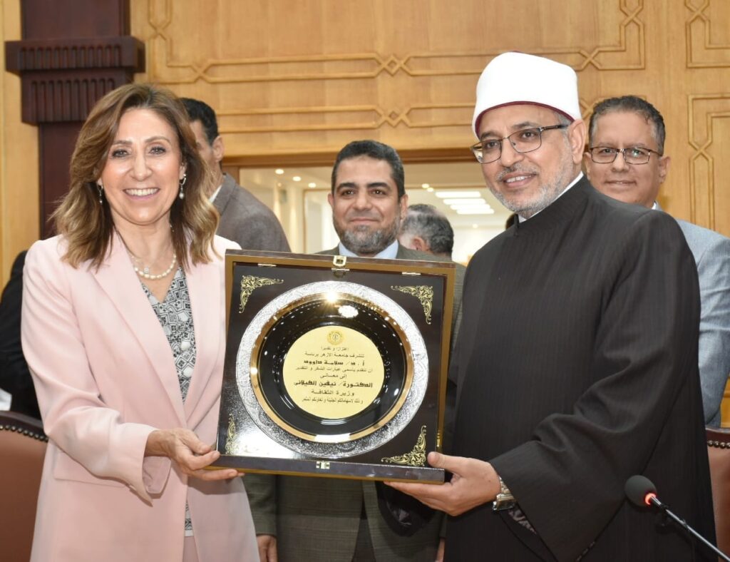 وقالت وزيرة الثقافة: “إننا نتطلع للعمل سويًا في ظل قيادة سياسية رشيدة تضع الإنسان المصري في مكانته التي يستحقها، وتوفر له الحياة الكريمة التي يتطلع إليها، وتعده للمستقبل متسلحًا بالعلم والمعرفة وقيم حضارته الأصيلة، كما أتطلع أن نعمل سويًا لنشر الثقافة المصرية بتنوعها الفريد، واستثمار المواهب الإبداعية والفنية لأبنائنا طلاب جامعة الأزهر”.