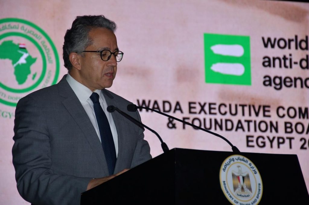 وأضاف وزير الشباب والرياضة: “أن التطور والازدهار للمجال الرياضي علي غرار ما تشهده الدولة المصرية من تنمية وتقدم في شتي المجالات، فضلاً عن توجيهات الرئيس للحكومة المصرية بشأن استضافة مختلف البطولات والفعاليات والأحداث الدولية الكبري، ومنها استضافة اجتماعات الوكالة الدولية لمكافحة المنشطات واجتماعات المكتب التنفيذي (الوادا) والعمل علي تنظيم تلك الفعاليات والأحداث علي أعلي مستوي وتحقيق النجاح لها علي كافة الأصعدة الفنية والإدارية واللوجستية.