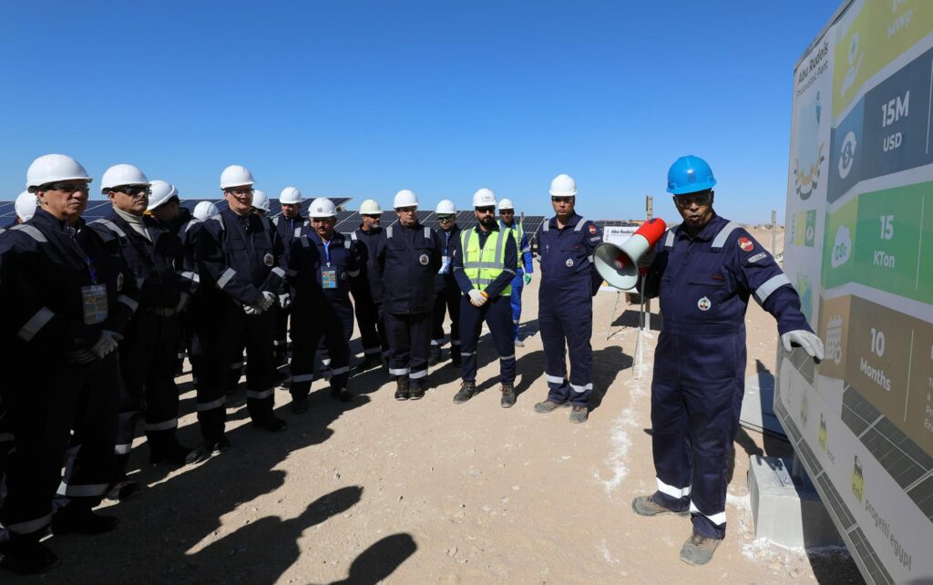 وفي مستهل الجولة الميدانية بحقول بترول بلاعيم، تفقد الوزيران محطة توليد الكهرباء بالطاقة الشمسية بحقول بترول بلاعيم بأبورديس بطاقة 14 ميجاوات، والتي تم تشغيلها هذا العام.. وأثنى المهندس كريم بدوي على الجهود المبذولة في هذا المشروع، الذي يعد ترجمة فعلية لاستراتيجية قطاع البترول لإزالة الكربون، وخفض الانبعاثات، وترشيد الطاقة من خلال تقليل استهلاك الوقود التقليدي واستبداله بالموارد المتجددة.