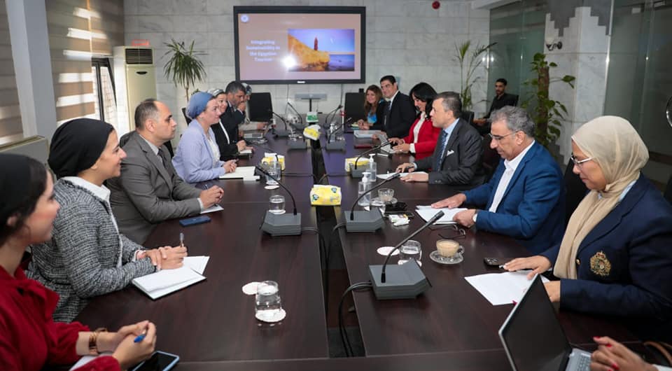 وأكد وزير السياحة والآثار على استمرار التعاون المثمر بين الوزارتين في مجال السياحة البيئية والمستدامة والحفاظ على التوازن البيئي لضمان استدامة النشاط السياحي وتعزيز القدرة التنافسية للمقصد السياحي المصري، مشيرًا إلى مشاركة الوزارة في الاستعدادات الخاصة بمؤتمر المناخ ” COP27 ” لتكون على أفضل وجه وبالشكل الذي يليق بسمعة مصر سياحياً ومكانتها الريادية في مصاف الدول السياحية الكبري.