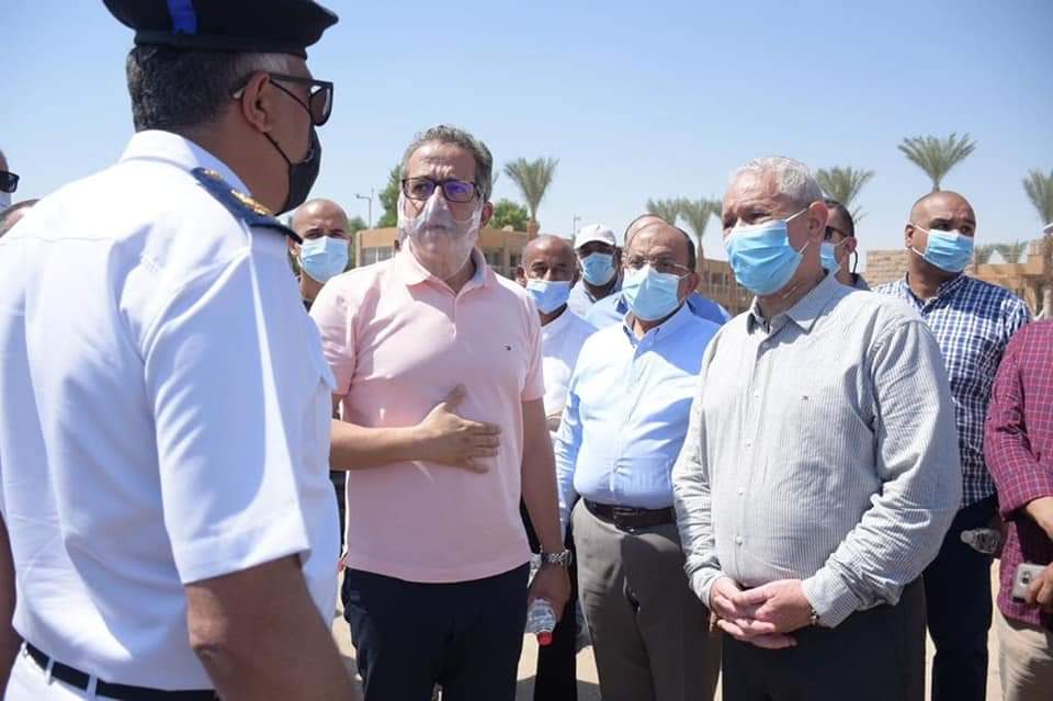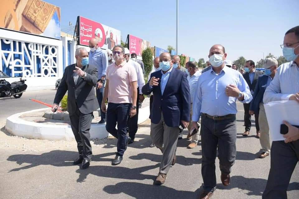 بمتابعة أعمال التطوير التي تتم لمدينة الأقصر من محيط طريق المطار والمناطق المحيطة بالمعابد وطريق الكباش ، حيث استمع وزيرا التنمية المحلية والسياحة الي شرح من مسئولي جهاز التعمير حول كافة الاعمال التي تم الانتهاء منها خلال الفترة الماضية من الجداريات المواجهة للبوابات بطول الكورنيش ، وتفقد أعمال التطوير للنافورة القائمة وإنشاء الميادين في مسار الطريق .